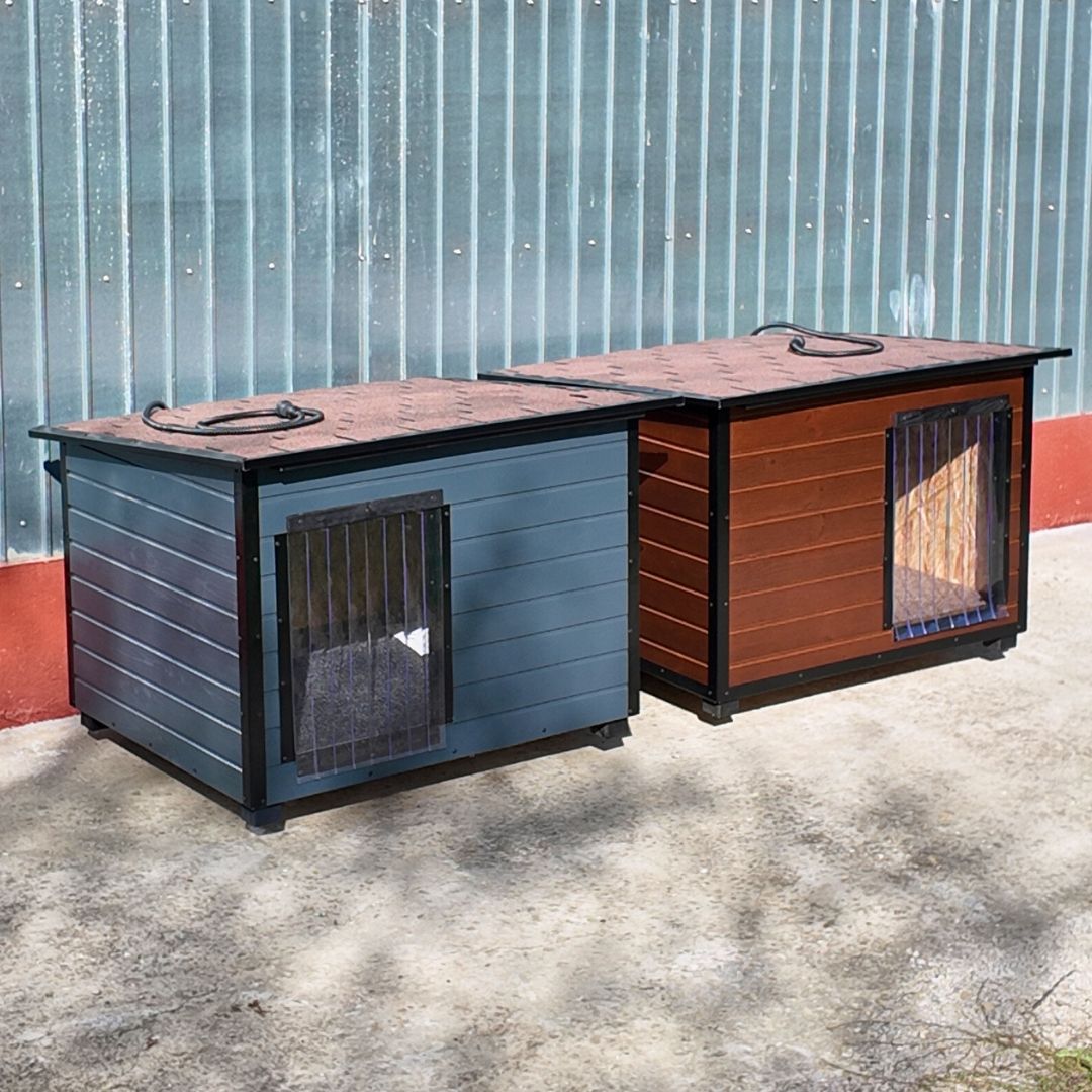 Profitam de situatie pentru a va arata cum aceeasi cusca la baza, in cazul de fata cusca de caine talie extra mare cu acoperis rabatabil, poate fi personalizata diferit in functie de preferintele fiecarui client.