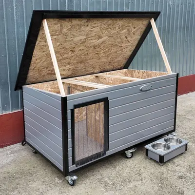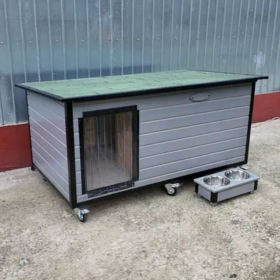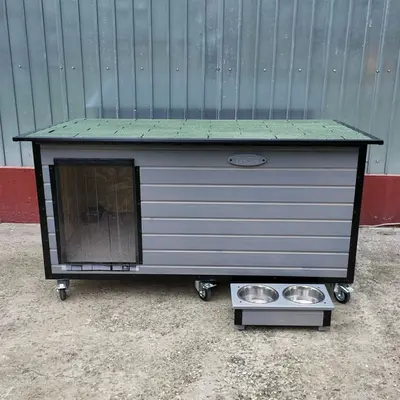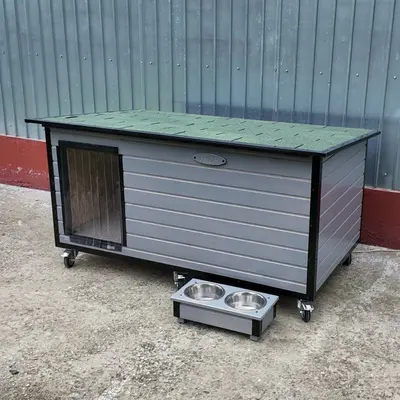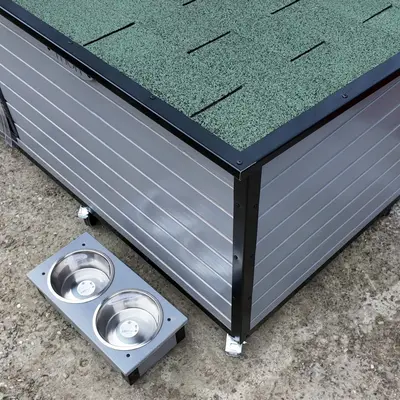 Este vorba despre modelul de cusca extra mare cu hol finisat in culoare gri nordic si sindrila dreptunghiulara verde.