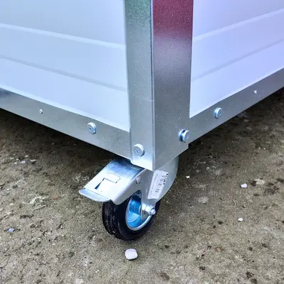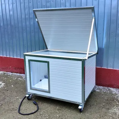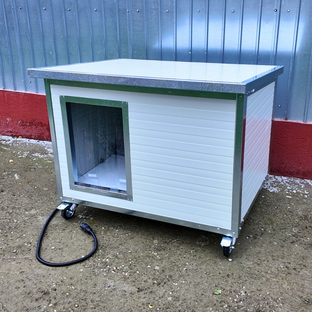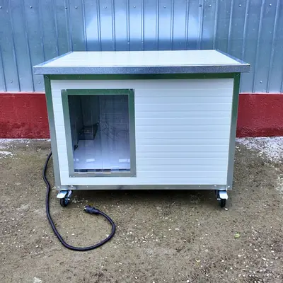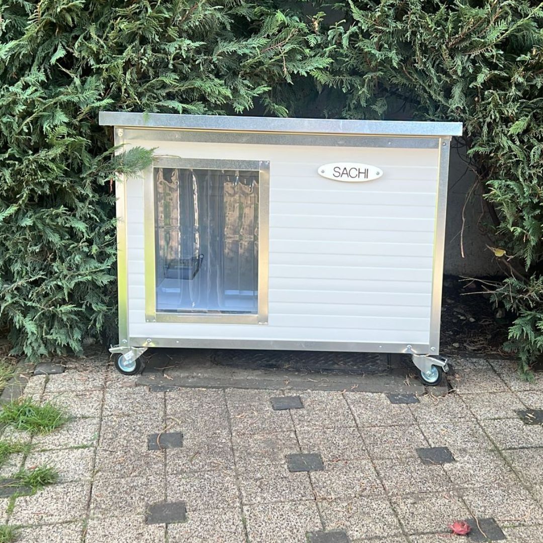 Va prezentam noua cusca de caine a lui Sachi, un akita inu. Este vorba despre o cusca de caine fabricata din panouri metalice izolate de 40mm, cu profile metalice antiros peste tot. O cusca extrem de durabila caruia i-au fost adaugate ca optionale perdeaua PVC la intrare, roti pentru a putea fi usor mutata si placuta cu nume.