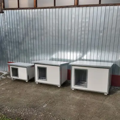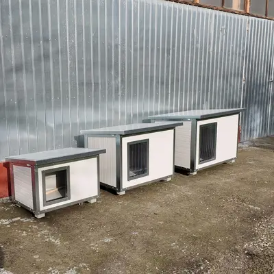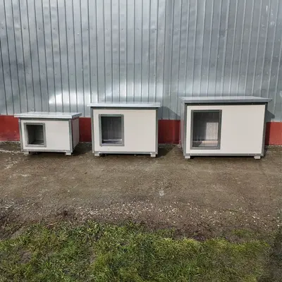 Acest model este fabricat integral din panorui metalice izolate si are peste tot profile metalice antiros devenind astfel indestructibile de catre dintii cainilor dar oferind totusi izolatie in perioadele reci.