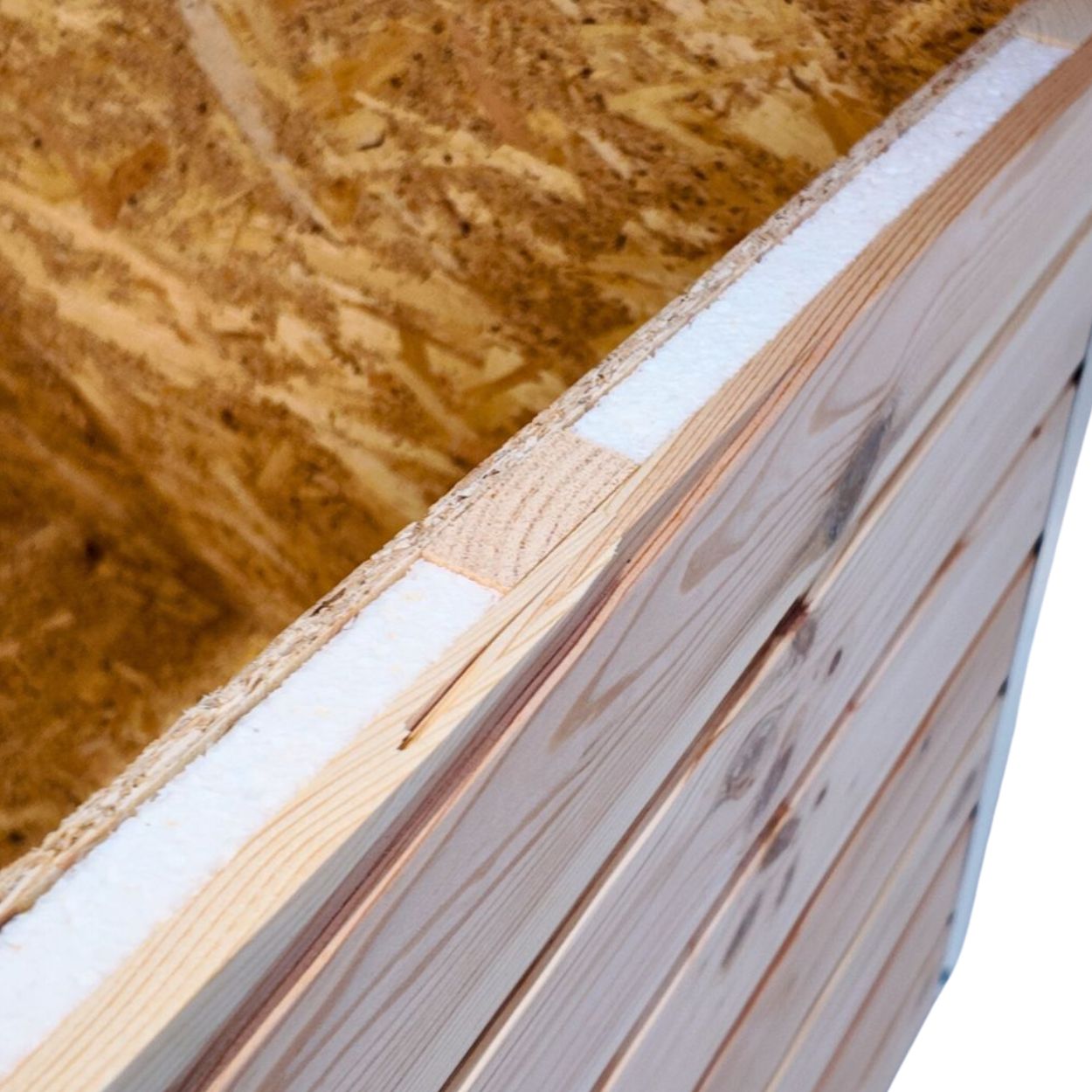- Izolație termică cu polistiren de 20 mm a podelei și pereților (panou sandwich de 4cm compus din lambriu lemn de 12 mm + polistiren de 20 mm + osb de 6mm);