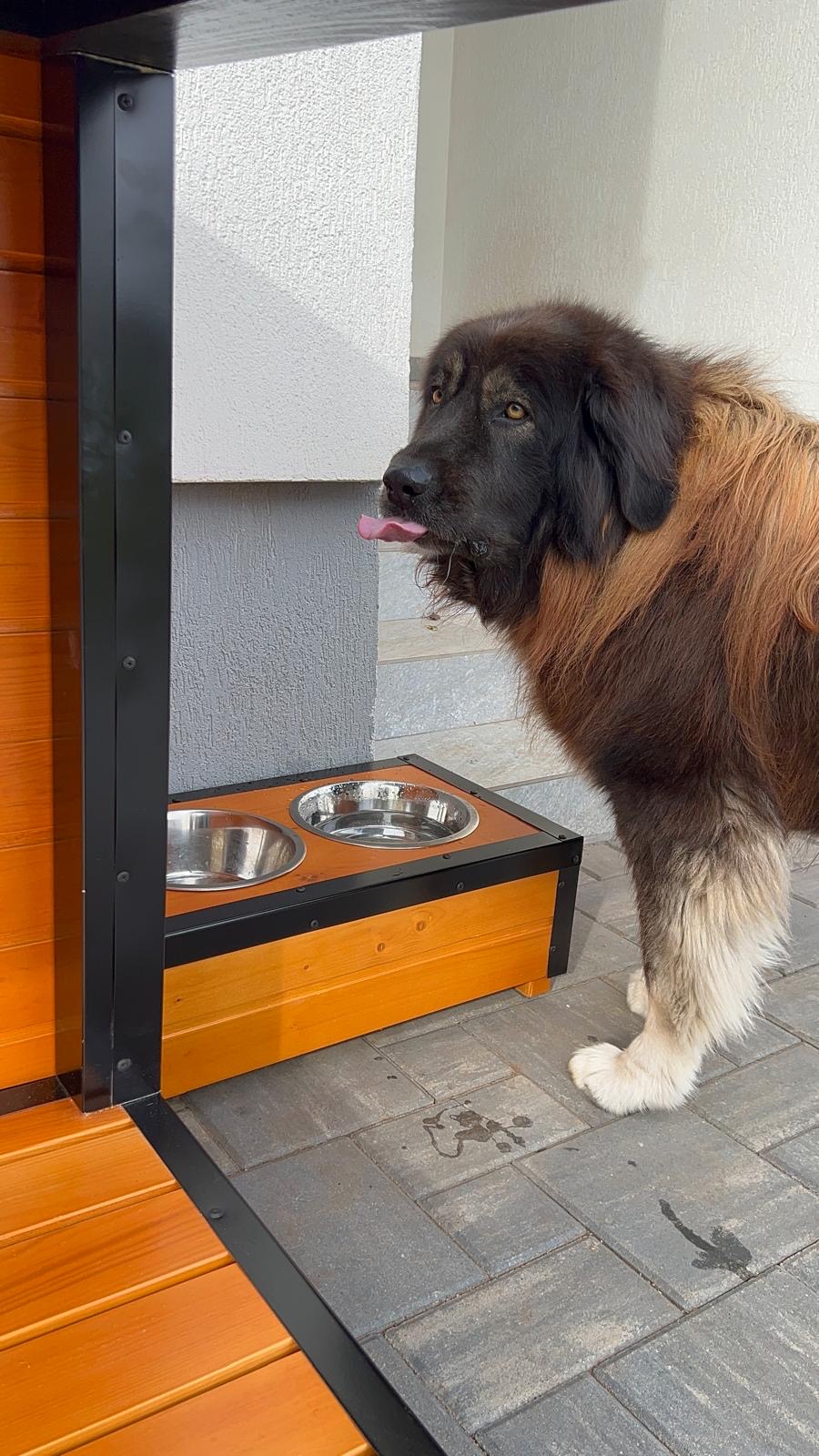 - Înălțată de la sol cu picioare de 5 cm foarte solide, fabricate din lemn tratat în autoclavă, cu o rezistență de 20 de ani, ce feresc câinele de umezeală și menține cusca uscată;