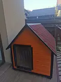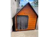 Cuscă câine mărime extra mare, cu protecții metalice anti-ros, podea și pereți de 4 cm izolați termic, realizată din lambriu lăcuit, perfectă pentru toate anotimpurile, fabricată în România de peste 15 ani și livrată asamblată oriunde în țară.