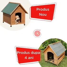 • Înălțată de la sol cu picioare de 5 cm foarte solide, fabricate din lemn tratat în autoclavă, cu o rezistență de 20 de ani, ce feresc câinele de umezeală și menține cusca uscată;