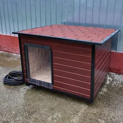 Cuscă câine mărime extra mare, cu protecții metalice anti-ros, podea și pereți de 4 cm izolați termic, realizată din lambriu lăcuit cu acoperiș rabatabil, perfectă pentru toate anotimpurile, fabricată în România de peste 15 ani și livrată asamblată oriunde în țară.