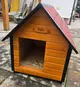 Cuscă câine mărime mare, cu protecții metalice anti-ros, podea și pereți de 4 cm izolați termic, realizată din lambriu lăcuit, perfectă pentru toate anotimpurile, fabricată în România de peste 15 ani și livrată asamblată oriunde în țară.