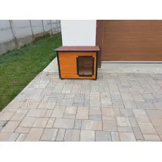 • Înălțată de la sol cu picioare de 5 cm foarte solide, fabricate din lemn tratat în autoclavă, cu o rezistență de 20 de ani, ce feresc câinele de umezeală și menține cusca uscată;