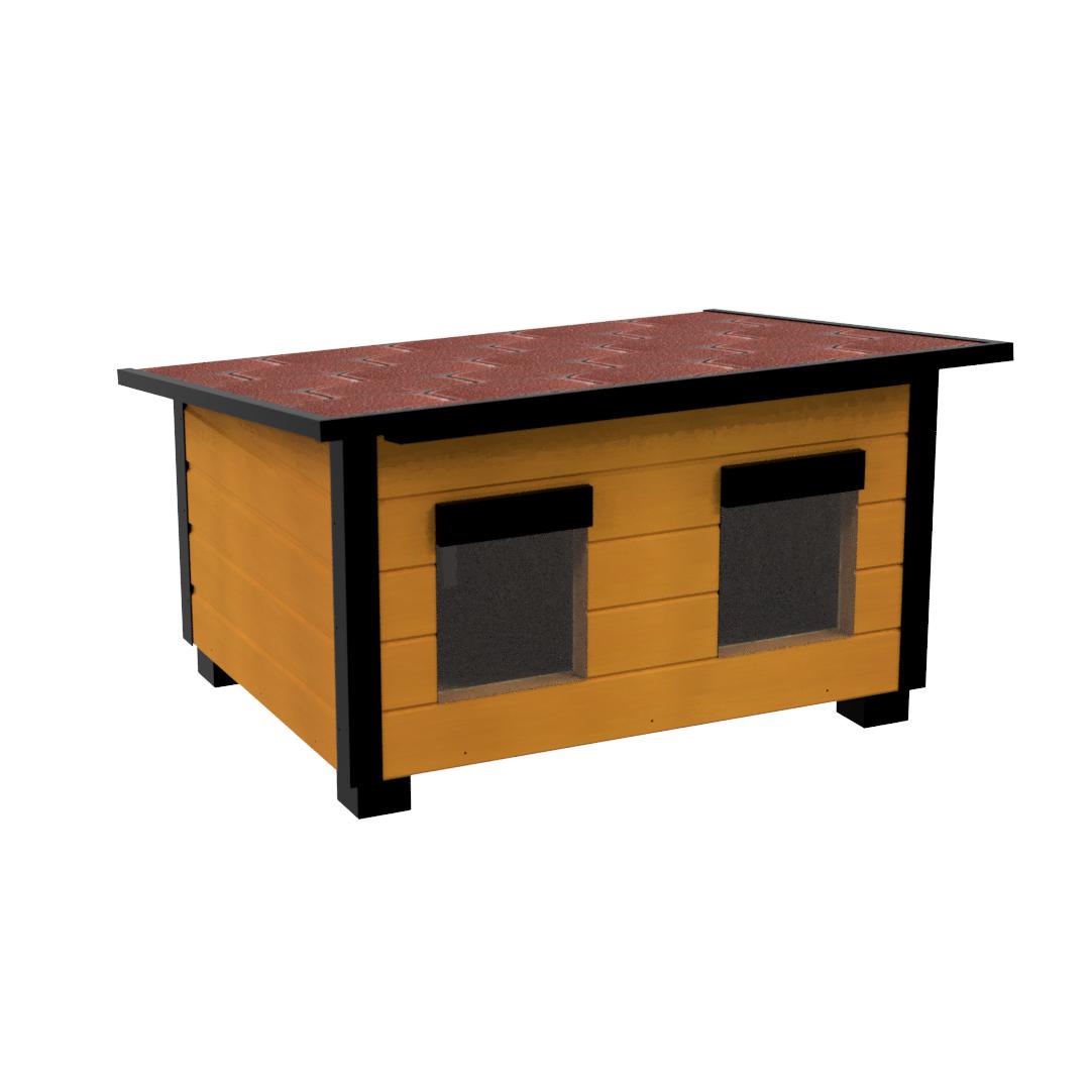 - Acoperiș rabatabil al custii învelit cu șindrilă bituminoasă cărămizie, ceea ce îi crește și mai mult rezistența la condițiile exterioare dificile fiind același material ce se montează și apecoperișurile caselor și facilitează accesul în interior pentru curățenie;