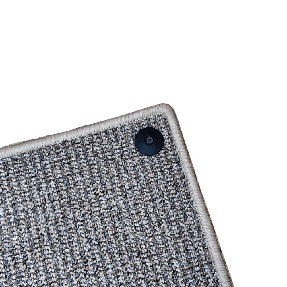 Mocheta este realizata fix de dimensiunea podelei custii de caini si dispune de un sistem de prindere prin clipsare. Am adaugat aceste clipsuri pentru a impiedica animalul de companie sa o scoata din cusca sau sa o ingramadeasca intr-un colt. In acelasi timp totusi printr-o simpla declipsare mocheta se poate scoate din cusca pentru a putea fi curatata si/sau spalata, putand fi pusa la loc la fel de usor.